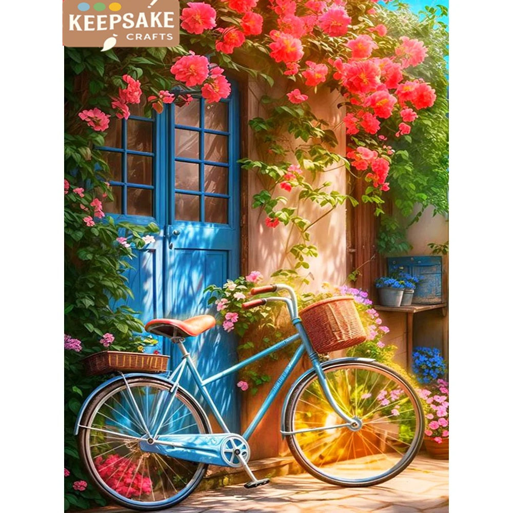 5D Diamond Painting Kit – Garden Bicycle Embroidery, Full Diamond Mosaic Landscape, New Art Wall Decor