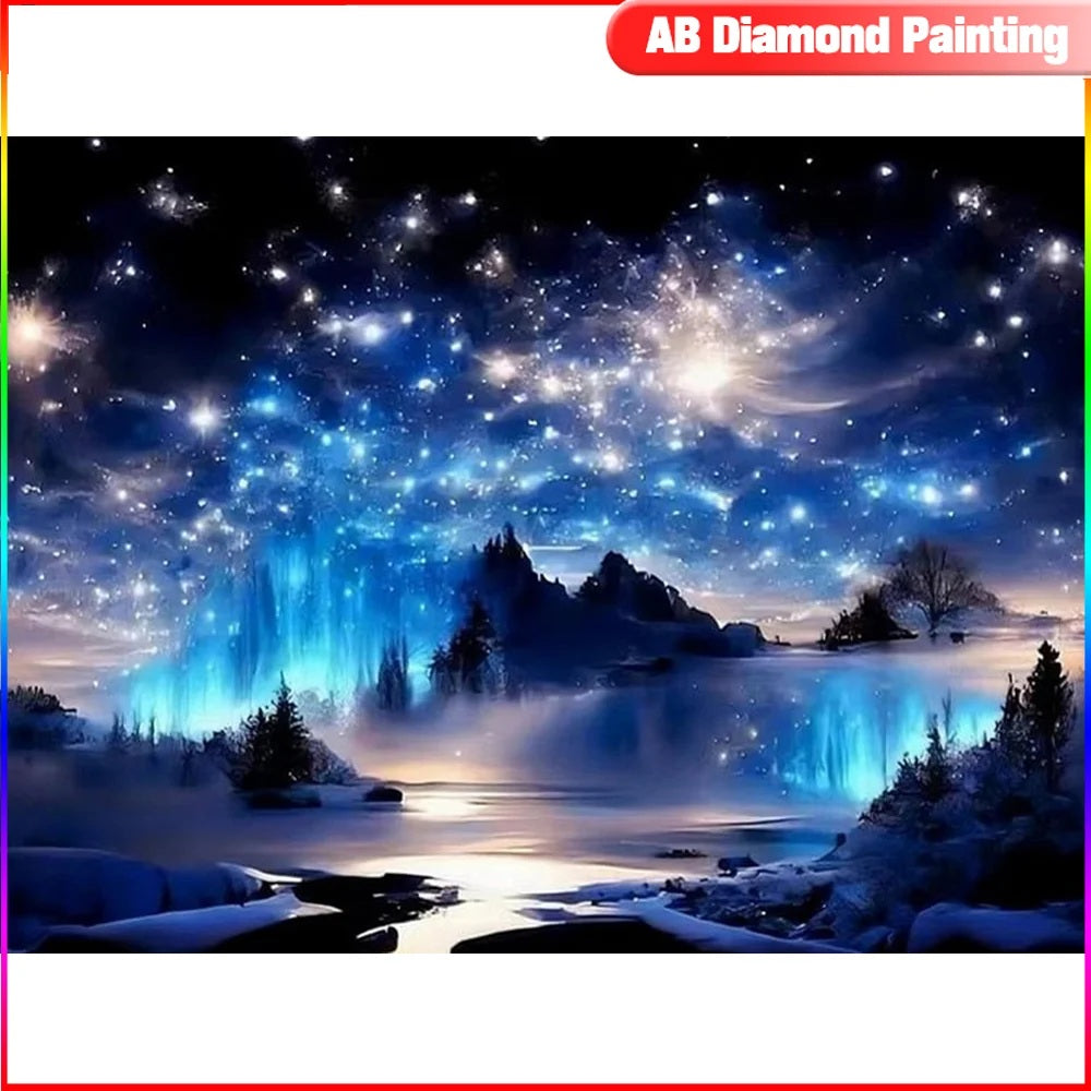 5D DIY Diamond Painting – Aurora Landscape with AB Drills, Starry Sky Mosaic Art for Decoration