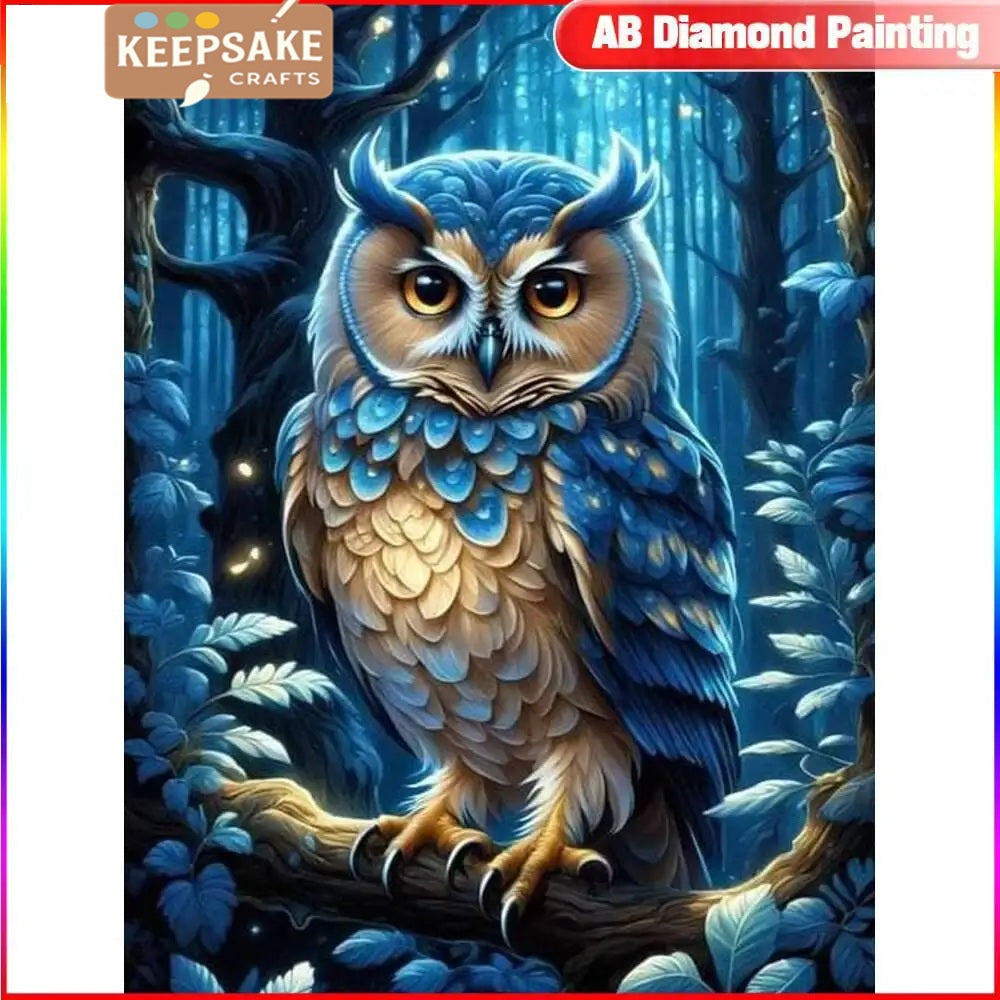 Owl Diamond Painting Cross Stitch Kit โ 5D DIY Mosaic Night Forest Art for Home Decoration