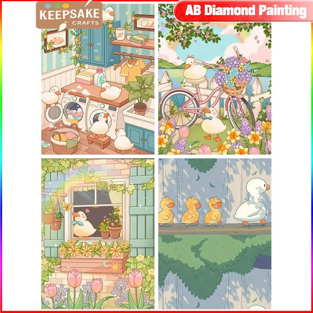Cartoon Duck Diamond Painting Kit – 5D DIY Rhinestone Mosaic for Home & Bedroom Decoration
