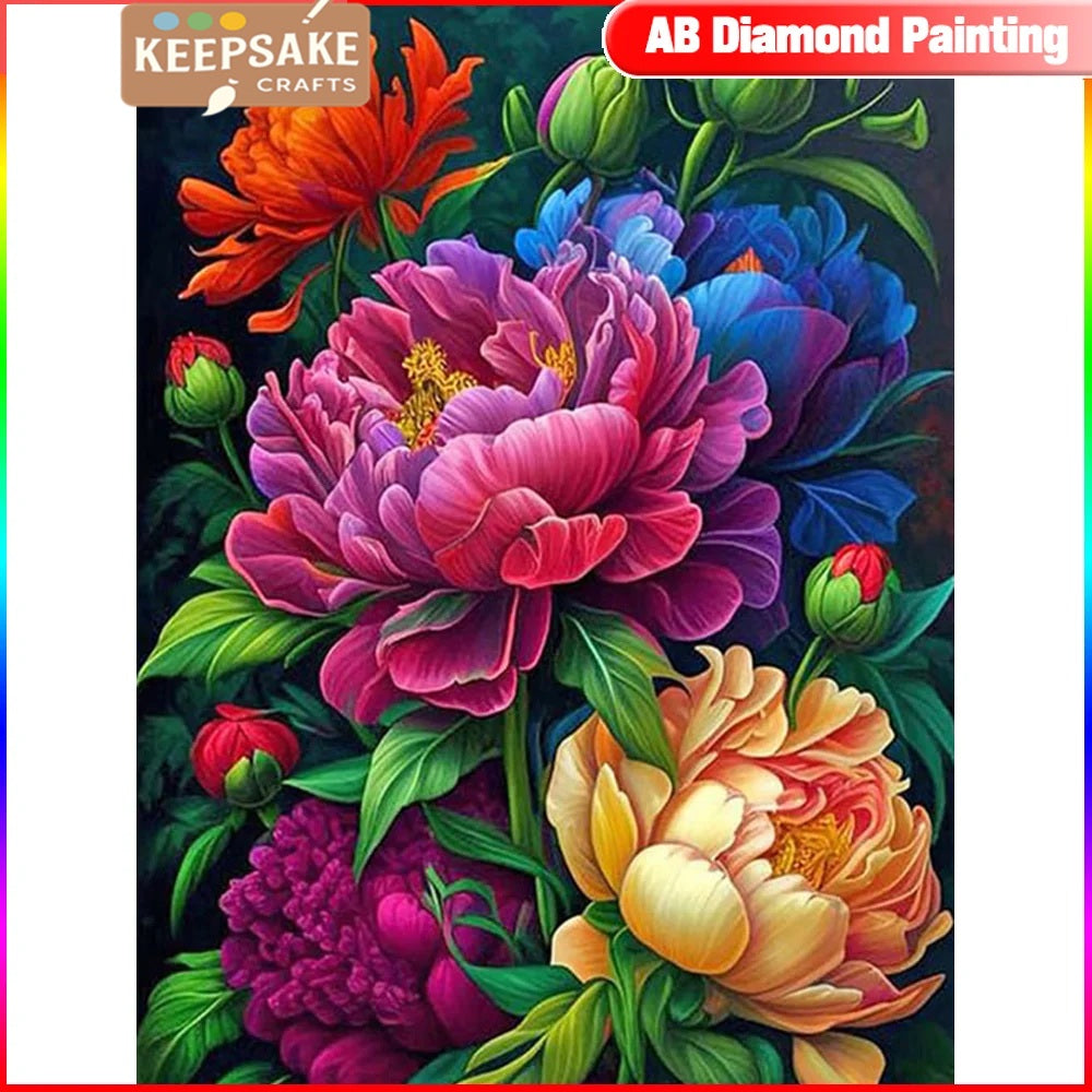 Diamond Painting Flower Kit – 5D Peony Design, Full Square/Round Drill Mosaic for Home Decoration