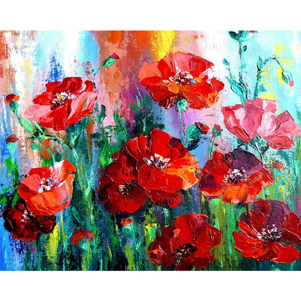 DIY Oil Painting by Numbers โ Red Flower Poppy Canvas Art with Frame, Unique Gift for Home Decor