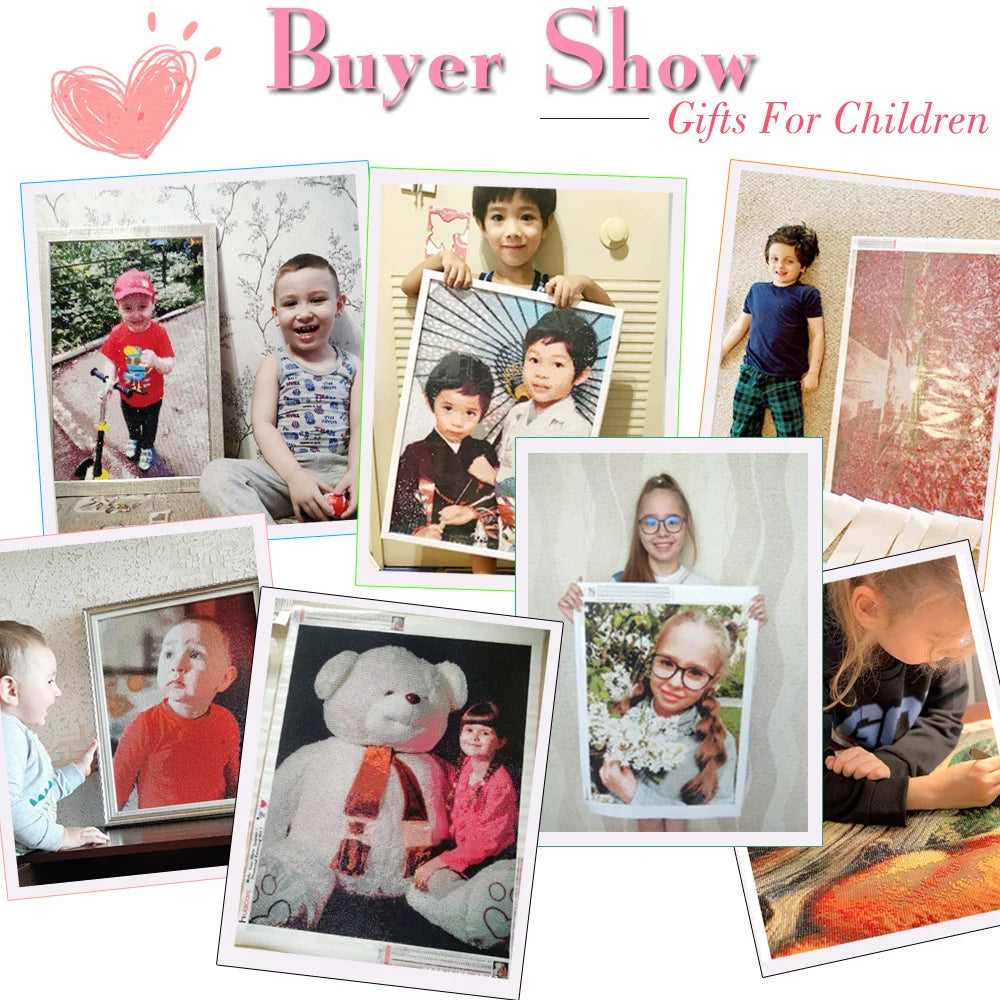 Personalized Diamond Painting Kit – Photo Custom Cross Stitch with Full Round Crystal Diamonds, Great Birthday Gift