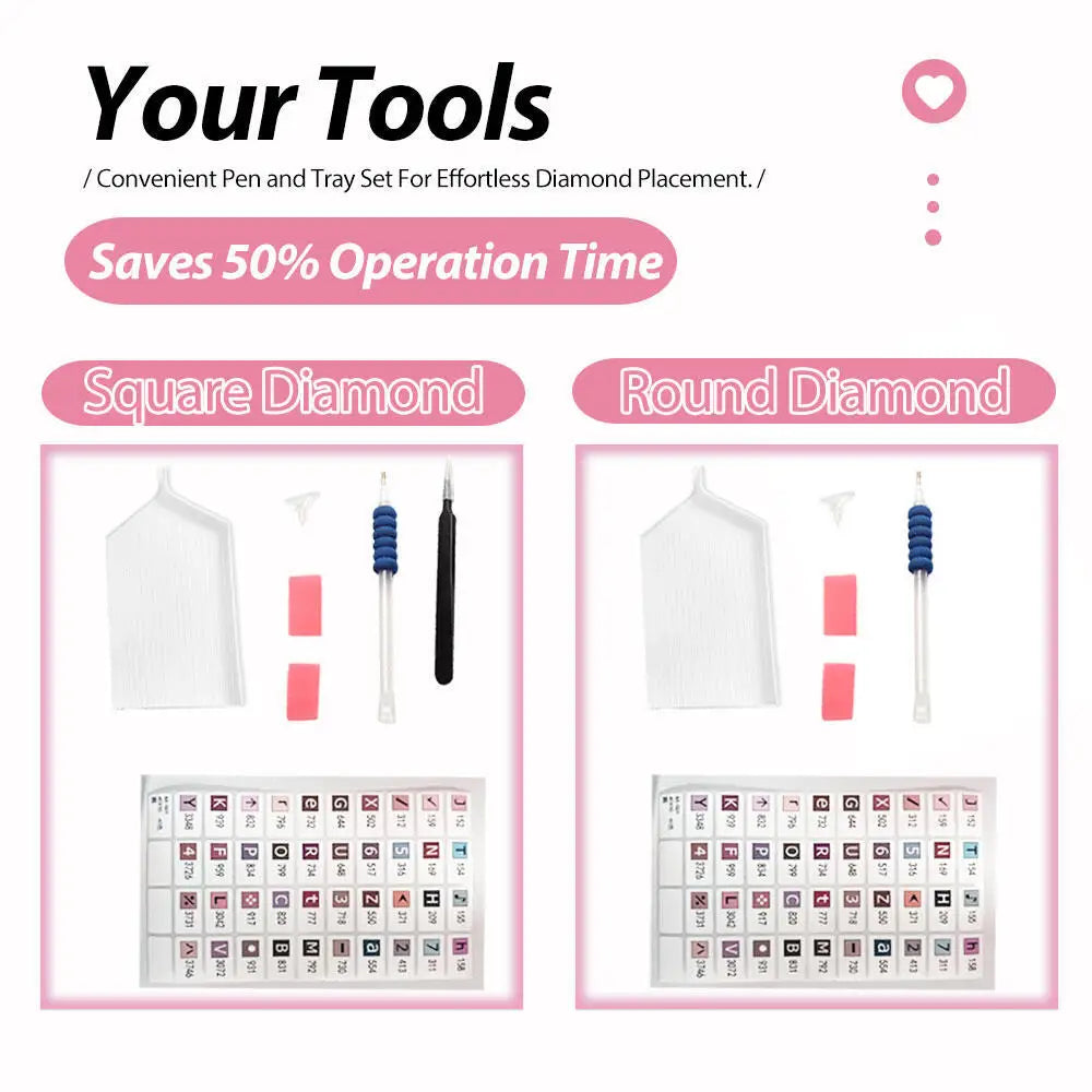 Full-drill kit with 30% more round diamonds than needed, making it easy and fun for beginners and adults.